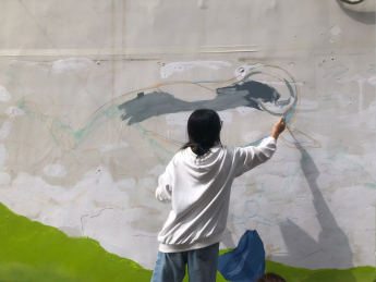 活动当天,志愿者们早早来到复江道社区,与社区工作人员对接后,迅速投入到墙绘创作中。志愿者们蓬勃的朝气和专业的创作吸引了众多社区居民驻足观看。孩子们好奇地询问画中的江豚,人们对焕然一新的墙面赞不绝口,不少社区居民在志愿者的邀请下,也拿起画笔,共同为画卷添上属于自己的色彩,实现了真正的社区共建。原本冰冷的水泥墙,在大家的共同努力下,变成了一幅长达六米的绚丽生态艺术长廊。