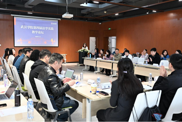 2025年11月8日,由法学院承办的武汉学院第四届法学实践教学论坛会议在校图书馆IC创客空间举行,武汉市武昌区人民检察院检察长赵慧、武汉市东湖新技术开发区人民法院庭长吴国阳、武汉市司法局周斌主任和中南财经政法大学教授疏义红作为嘉宾受邀出席,大会还特别邀请了广州仲裁委员会知识产权仲裁院、广东省人工智能法律应用重点实验室、北京新橙科技有限公司(iCourt)、超星集团湖北分公司、中国知网、智慧树湖北地区等多家法律科技公司及十余家法院、检察院、律所等协同育人合作单位参会。会议由法学院副院长周萍主持,法学院党总支书记、院长王广辉教授,党总支副书记、副院长田强及全体专任教师参加会议。