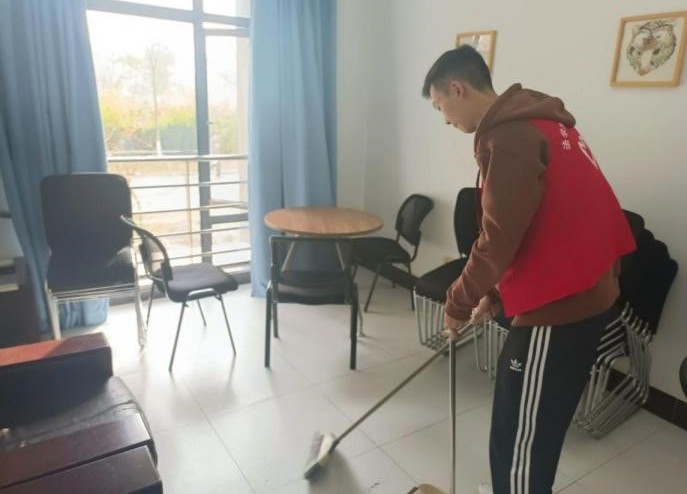 在负责人对活动进行了详细的分工,进一步明确了注意事项后,“红马甲们”就开始了他们的打扫和清理工作。室内的桌椅底下、容易被忽视的墙角、堆放闲置物品的桌面,室外的门窗、走廊的宣传画等都被志愿者们一一清理和打扫干净。虽然已进冬日,但仍能看到他们额头上细密的汗珠。这是他们辛勤劳动的象征。他们脸上满意的笑容,成为武院冬日里最暖的微风。