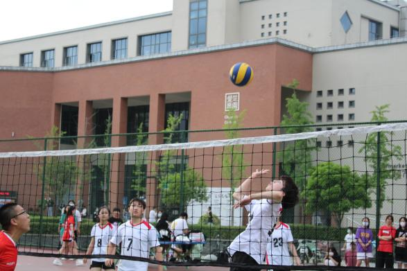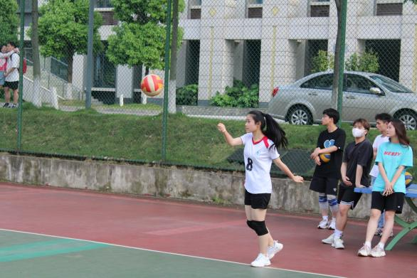 随着哨声响起,比赛正式开始,由法学院代表队率先发球。法学院代表队士气高扬,凭借着干净利落的发球动作,率先拿下六分,引起在场观众的阵阵欢呼。但信息工程学院代表队也不甘示弱,找准机会,迅速组织反击,追平比分。场上局势一度十分焦灼,排球在场上划出优美的弧线,每一次传球,每一次扣杀,都牵动着场内外观众的心弦。最终,经过一番激烈的比拼,信息工程学院以25:16的成绩,获得了第一场比赛的胜利。