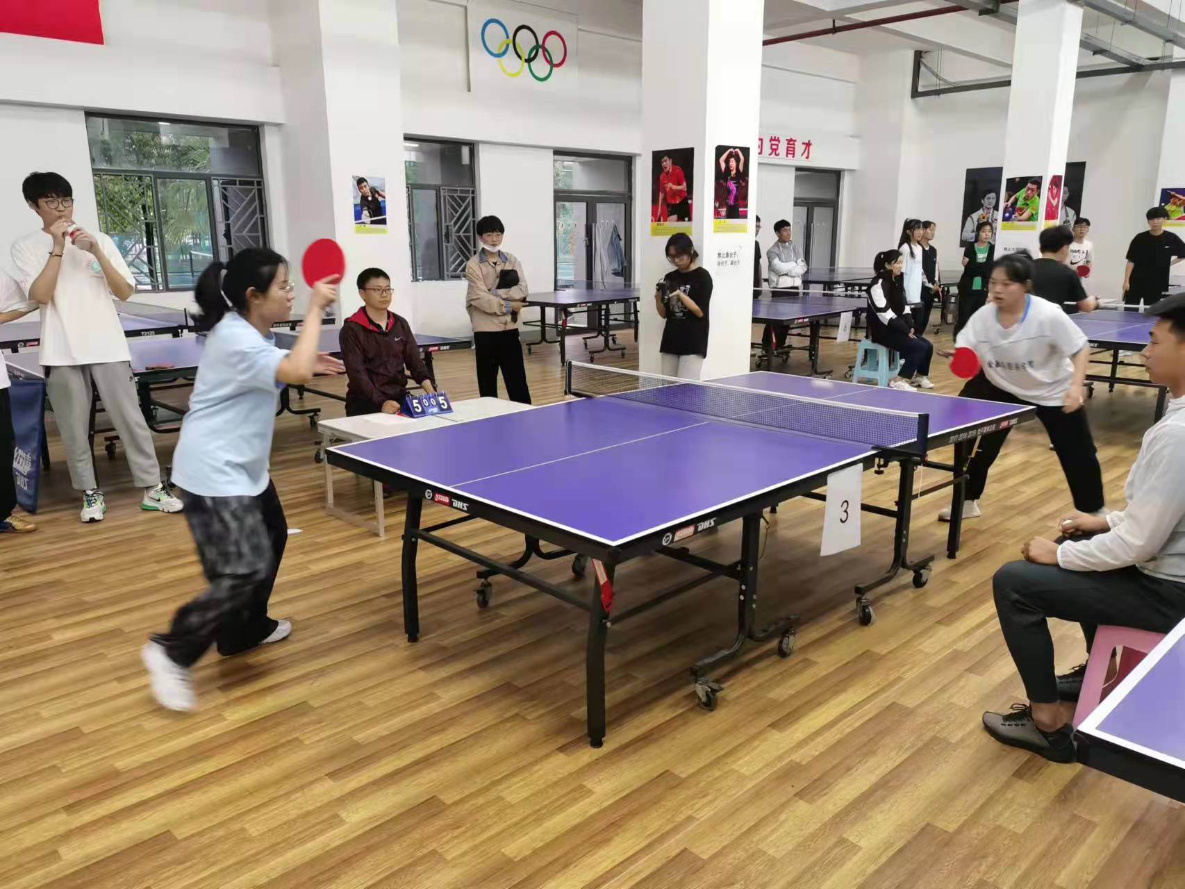 为丰富学生的课余生活,传承乒乓文化,发扬体育精神,促进学生德智体美劳全面发展,2022年4月28日18:00,武汉学院春季运动会乒乓球锦标赛团体赛半决赛及决赛在乒乓球室拉开序幕。