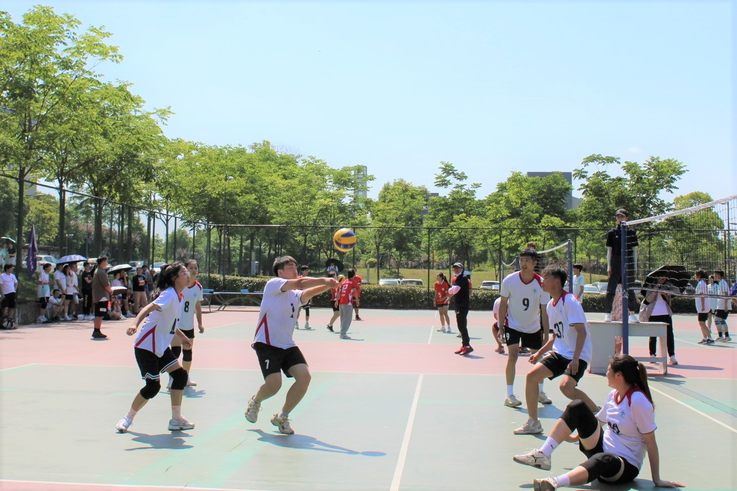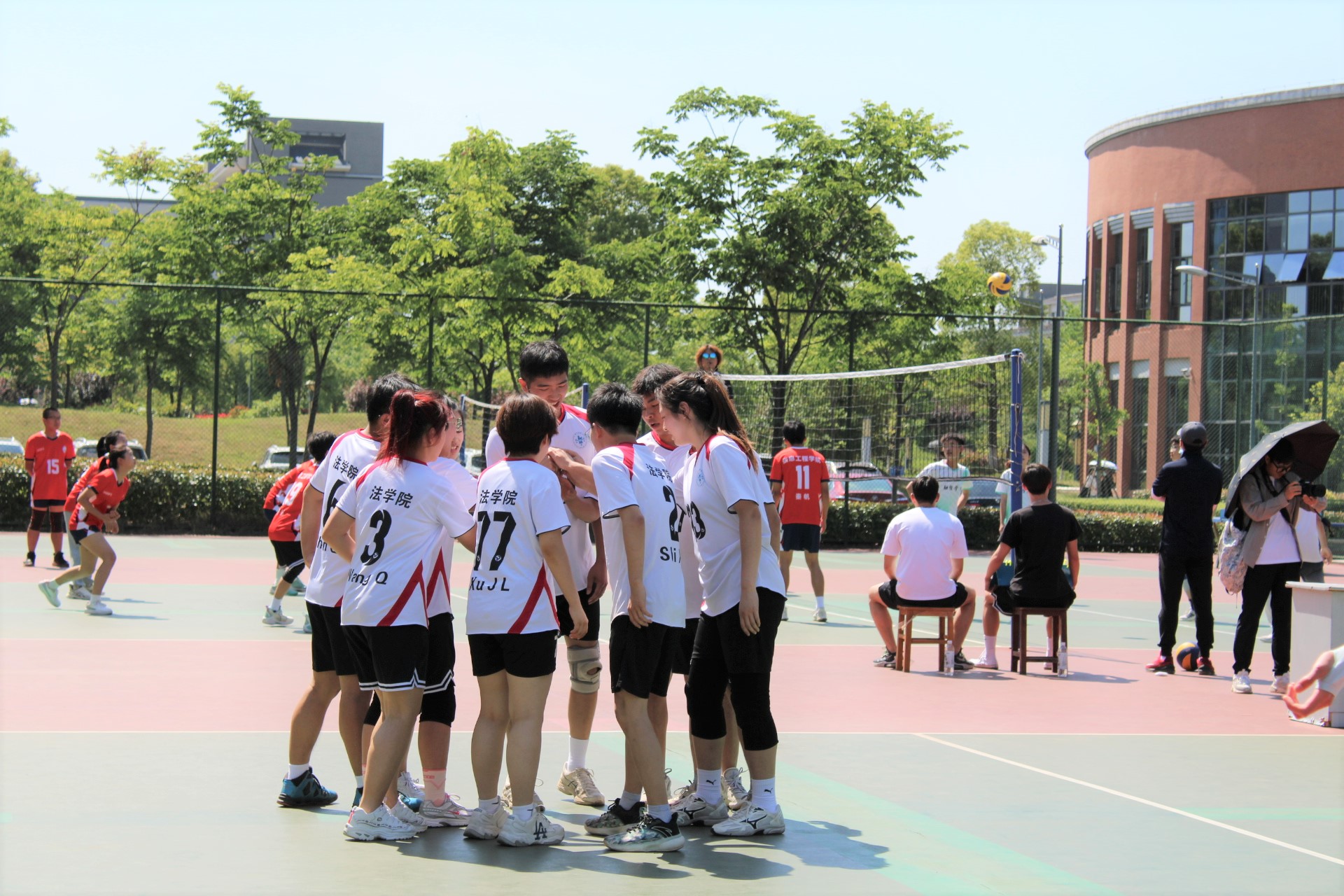 5月4日下午14:30,2022年武汉学院春季运动会排球锦标赛决赛在东区排球场如期举行。不同以往,本次法学院与通识课部体育系的冠军之争备受瞩目。赛前,排球运动员们早早来到场地,积极热身,通过对垫的方式来缓解紧张的心情,让自己进入最佳状态。一声哨向,双方运动员快速就位,严阵以待。比赛第一回合,法学队员士气高涨,以一个漂亮的发球赢下了第一分,之后更是凭借着精妙的配合连连得分,体育系代表队面对如此的攻势,迅速转换对战思路,以守为攻,巧妙的救球赢得阵阵欢呼,最终,法学院代表队一鼓作气赢下了第一局的胜利。