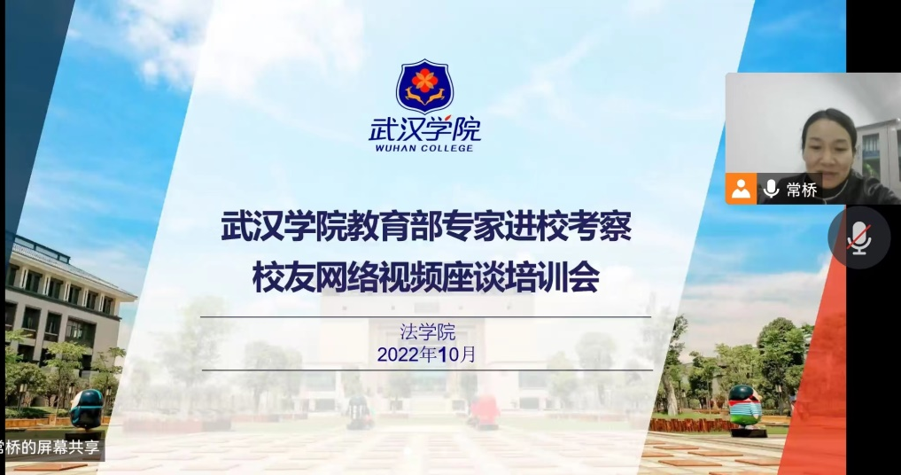 为做好本科合格评估专家进校考察用人单位和校友网络视频座谈工作,向用人单位和校友明确网络视频座谈各项工作方案内容和要求,切实推进评估工作顺利进行,2022年10月27日晚,法学院分别组织开展了线上用人单位和校友网络视频座谈培训会,学院党总支副书记常桥主讲,线上座谈工作联络人许靖、用人单位代表及校友代表分别参会。