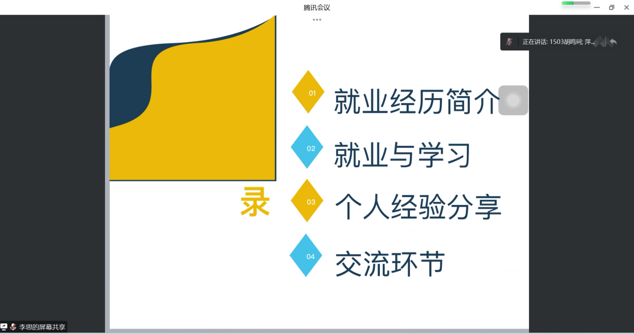 最后,王平波老师对本次交流会做出总结。在感谢胡鸣珂同学精彩的分享的同时,希望毕业生们能够借鉴经验,提前做好就业规划,多借助同学、老师以及网络的帮助,关注招聘信息,及时做出反应,期待同学们都能够找到自己满意的工作。
