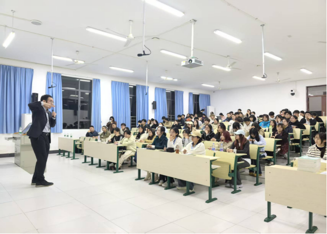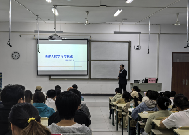 为帮助法学学子明确职业发展方向、科学规划学业生涯,2025年10月31日晚,法学院在学1102教室成功举办"与光同向,与法同行"法科生职业规划与2026年备考计划专题讲座。本次讲座特邀国家统一法律职业资格考试商经法资深讲师刘安琪担任主讲,现场座无虚席,气氛热烈。
