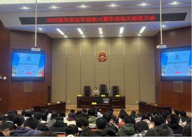 本次动员大会的召开,标志着法学院2026届本科毕业生实习与论文工作正式启动,为后续工作的顺利推进奠定了坚实基础。学院将持续做好过程指导与服务保障,助力学生高质量完成毕业实习与毕业论文撰写任务。
