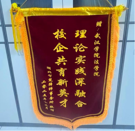 中期检查期间,我院收到了来自实习单位的真挚赞誉。湖北智楚律师事务所特意向学院赠送锦旗,上书“理论实践深融合,校企共育新英才”,这面锦旗不仅是荣誉,更是实习单位对我院人才培养质量和实习组织工作的高度认可,是校企协同育人成效的有力见证。
