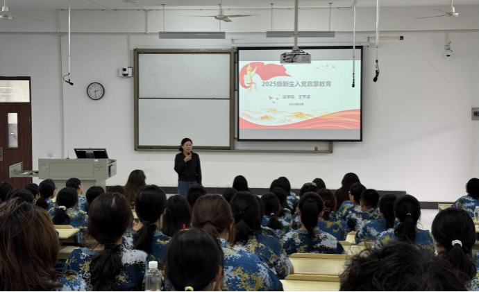 为加强新生理想信念教育,引导新生积极向党组织靠拢。法学院于9月24日在1号学院楼开展“扣好信仰第一粒扣子,共赴青春报国征程”主题入党启蒙教育大会。本次启蒙教育由法学院2025级学生党支部书记王平波主讲,从党的基本知识、入党条件、入党流程以及入党材料撰写格式四个维度,为新生搭建起走近党、认识党、追随党的思想桥梁,法学院2025级全体新生团员参与此次会议。